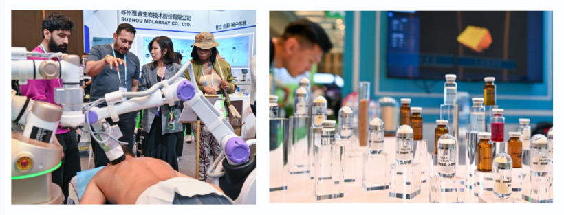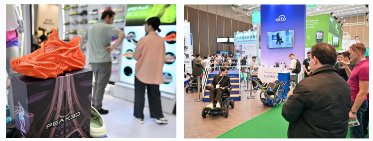 High-tech products such as embodied robots, brain-computer interface devices, bio-based materials, AI smart rehabilitation equipment, and 3D printing became star attractions, drawing significant attention from buyers.